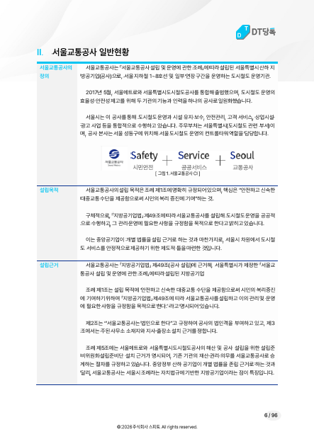 서울교통공사의 일반현황, 경영 비전, 2026년 철도·교통 업계 최신 이슈(스마트 모빌리티·철도 안전·친환경 교통 등)까지 면접에서 바로 활용할 수 있는 분석 자료를 포함했습니다.