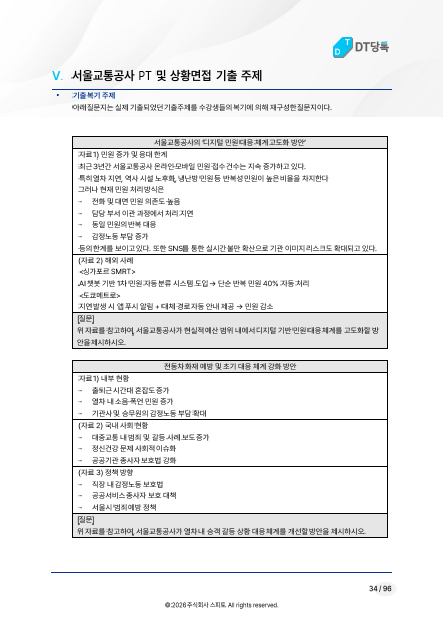 V. 서울교통공사 PT 및 상황면접 기출 주제 34