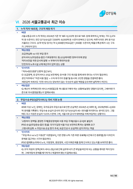 ⅤI. 2026 서울교통공사 최근 이슈 50