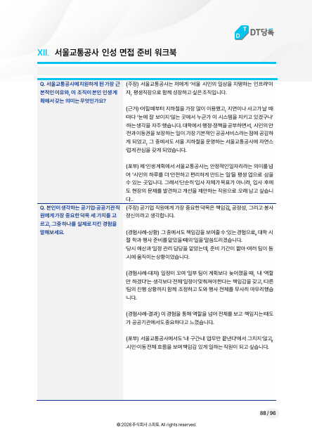 XII. 서울교통공사 인성 면접 준비 워크북 88
