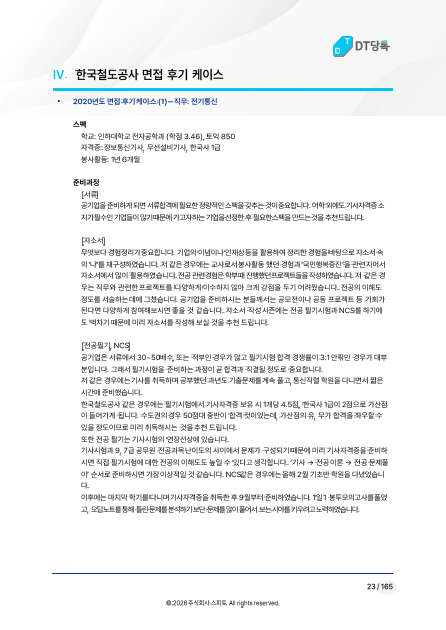 IV. 한국철도공사 면접 후기 케이스