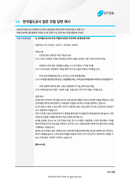 VII. 한국철도공사 질문 모범 답변 예시